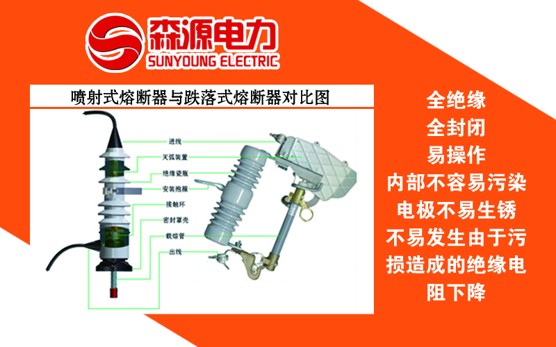 噴射式熔斷器主要用于電力行業城鄉輸配電系統,可實現全量程保護(過負載和斷路故障),是傳統的跌落時高壓熔斷器的更新換代產品,昊天通噴射式熔斷器符合GB15166.3 GB/T15166.4等標準。將絕緣支架與滅弧管等合二為一的內插式結構,下卡座內下觸頭的喇叭口結構,對滅弧管都具有扶正,導向作用,使得合壓成功率達100%,解決了傳統式跌落熔斷器合閘成功率低的弊端。